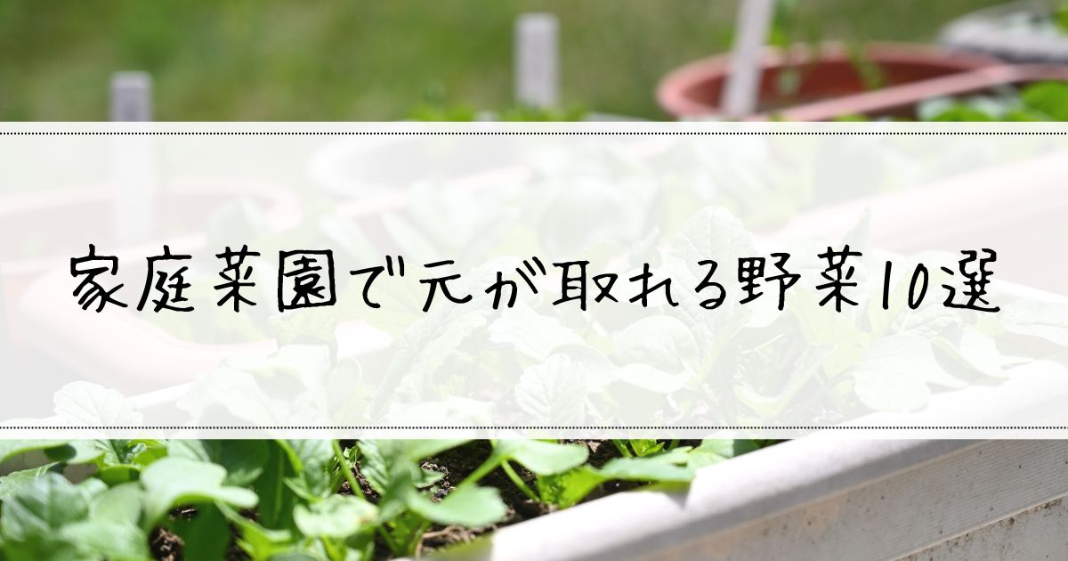 ただし、元の取り方が野菜によって異なるので、目的に合わせて野菜を選ぶことが大切です。「いっぱいあってどれを育てたらいいのか迷っちゃう…」という人は、下記の記事でコスパ最強野菜を厳選しているので、そちらも参考にしてください。