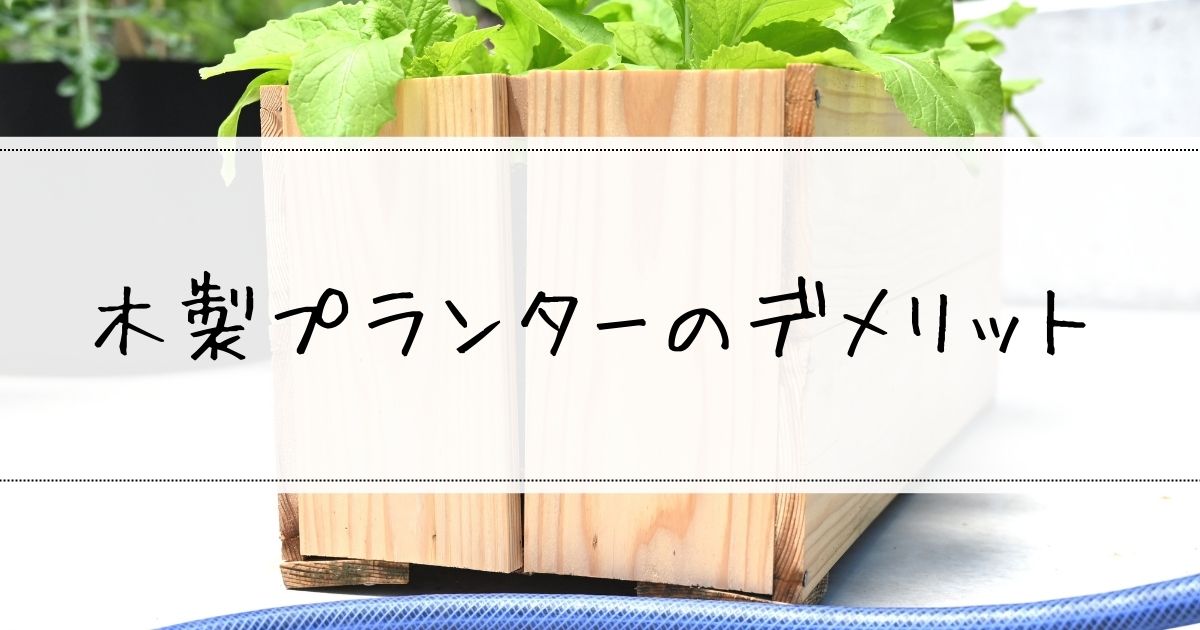 木製プランターには、耐久性や扱いづらさなどのデメリットがあります。木は生きている素材なので、ほかのプランターにはないデメリットが生じるのは致し方ありません…。